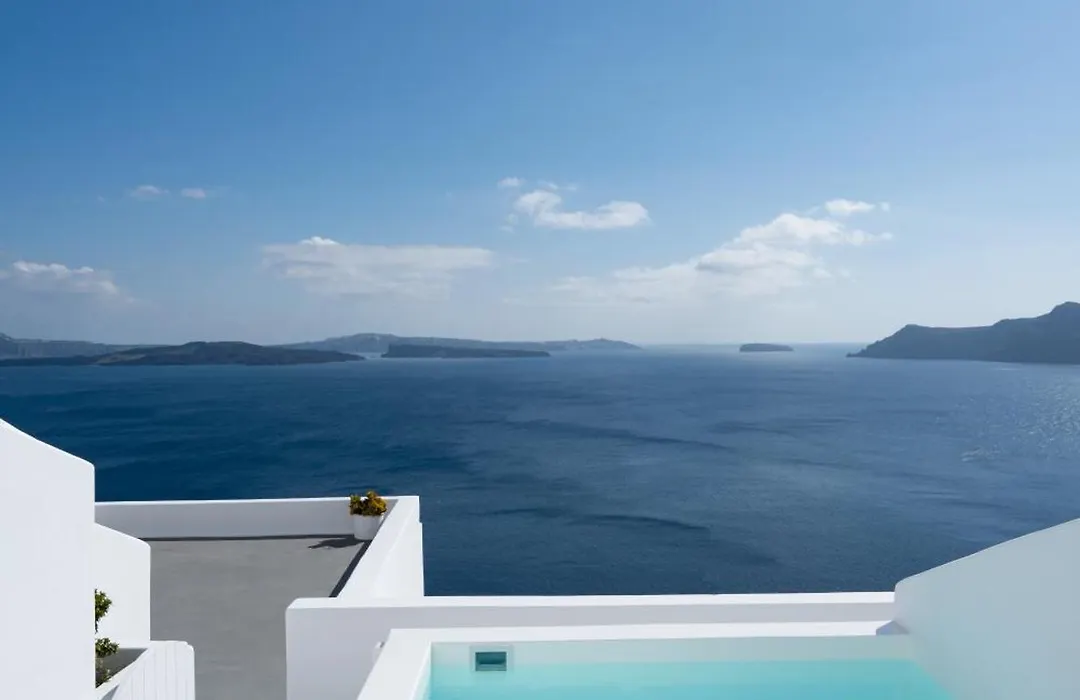 Both properties occupy prime positions on the Oia Caldera rim, combining Cycladic cave architecture with caldera-view terraces - but they differ significantly in scale, wellness depth, and suite configuration.
